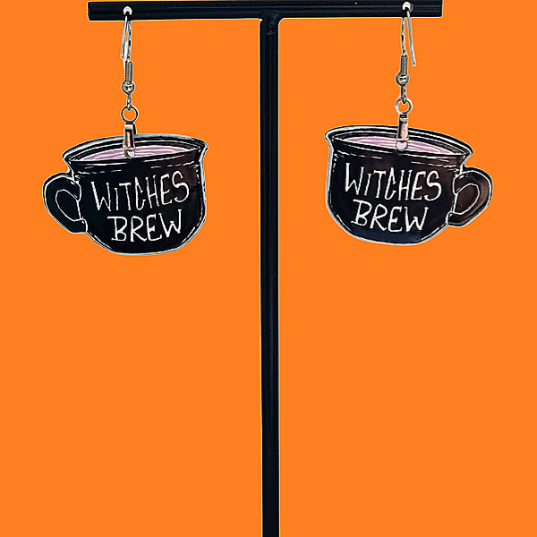 Deze Witches Brew oorbellen zijn een magische en griezelige toevoeging aan je Halloween-outfit. Het ontwerp toont een heksenketel met de tekst Witches Brew, borrelend van mysterieuze ingrediënten en duistere charme. Perfect voor Halloweenfeesten, verkleedpartijen of een spooky dag op school of werk. Ideaal om je look een betoverende en speelse twist te geven tijdens het engste feest van het jaar.